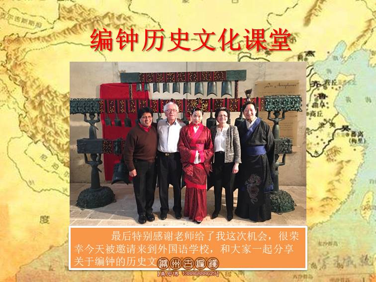 序:同學們,大家好!我是編鐘文化傳承人龔宏博,從我的父輩起就開始從事編鐘的復仿制工作,如今已有快30年了,感謝謝老師給了我這次機會,很榮幸今天被邀請來到 學校,和大家一起分享關(guān)于編鐘的歷史文化。