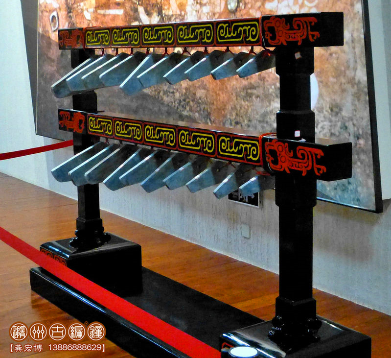 材質(zhì):編鐘:青銅,鐘架:漆木