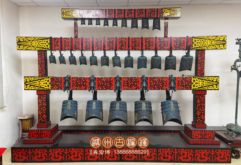 簡(jiǎn)介:26件木結(jié)構(gòu)演奏級(jí)編鐘,是一套專業(yè)演奏類古樂(lè)器,整套編鐘分3層懸掛排列,由長(zhǎng)短不同的三根彩繪橫梁和4個(gè)青銅佩劍武士立柱及2根圓立柱組成