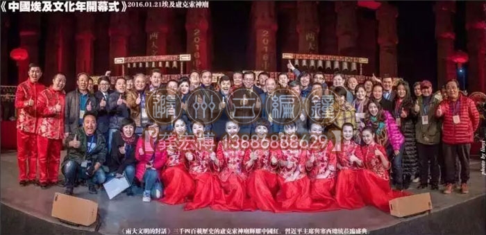 《兩大文明的對(duì)話》三千四百載歷史的盧克索神廟輝耀中國(guó)紅,彩排演出結(jié)束后演職人員合影紀(jì)念。